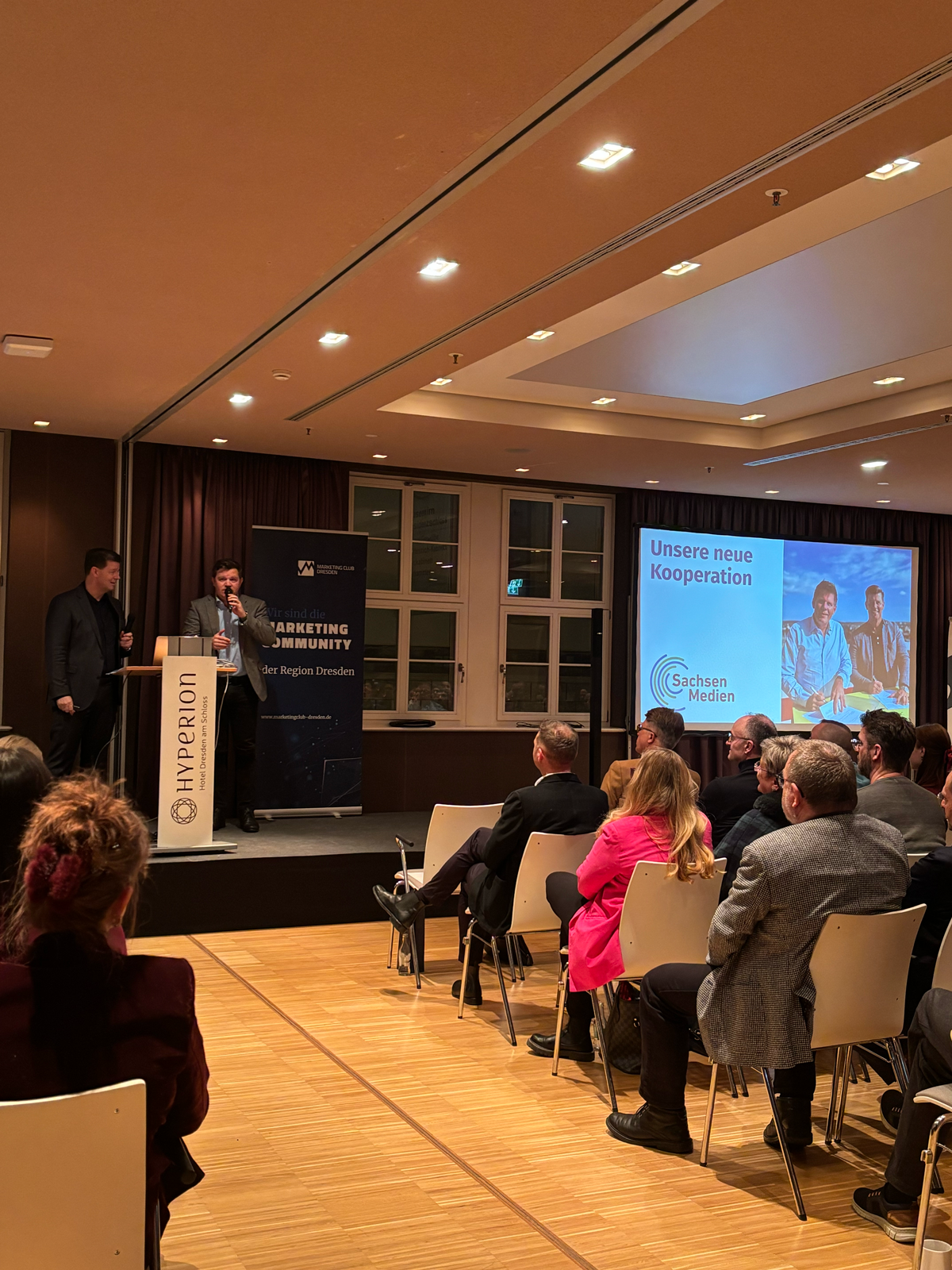 Ein weiteres Highlight war die Vorstellung der neuen Kooperation mit Sachsen Medien: Mit den Dresdner Marketing Pionieren 2026 werden fünf Stipendien für junge Talente vergeben, inklusive Mitgliedschaft, Workshops und Praxiseinblicken.